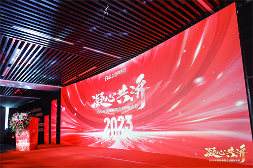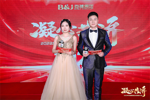 伴隨倒計時的口播響起,主持人閃耀登場。凝心共濟(jì)——2022年百捷集團(tuán)總結(jié)表彰大會拉開帷幕。